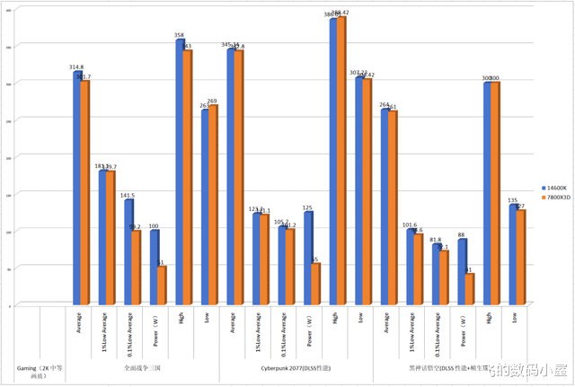 但在《全面战争:三国》《Cyberpunk2077》《黑神话悟空》里,14600KF保持三项平均帧领先。