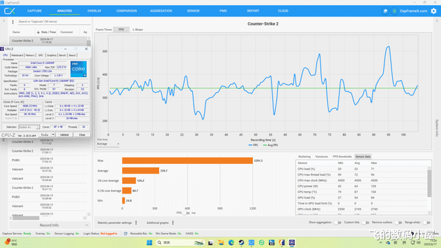 首先,我们来说说平均帧这个曾经的主要性能指标。平均帧指的是在单位时间内所有帧数的平均值。在过去十年前的低性能时代,平均帧确实能很好地反映硬件的整体性能表现。然而,如今的硬件发展日新月异,任何新发布的CPU在平均帧方面的性能,都远超了玩家的实际需求,也超过了大部分显示器的刷新率。